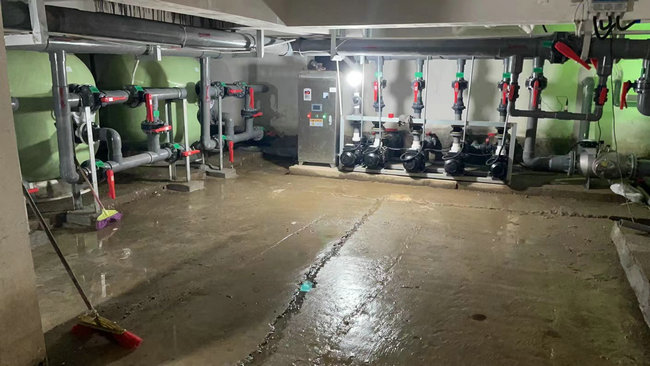 名江工作人员泳池调试中